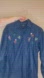 Casual blue denim shirt with colorful embroidery. Button-down style. Ideal for relaxed wear.