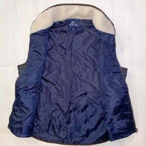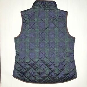 British Khaki women’s vest, blue and green plaid with Sherpa collar