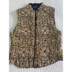 British Khaki Equestrian Style Paisley Quilted Zipper Vest Sz L