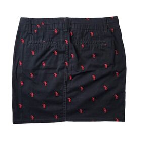 Keywords: mini skirt, seahorse, embroidered, cotton blend, size 6, black skirt, red seahorse, casual skirt, summer skirt, coastal style, nautical skirt, womens skirt