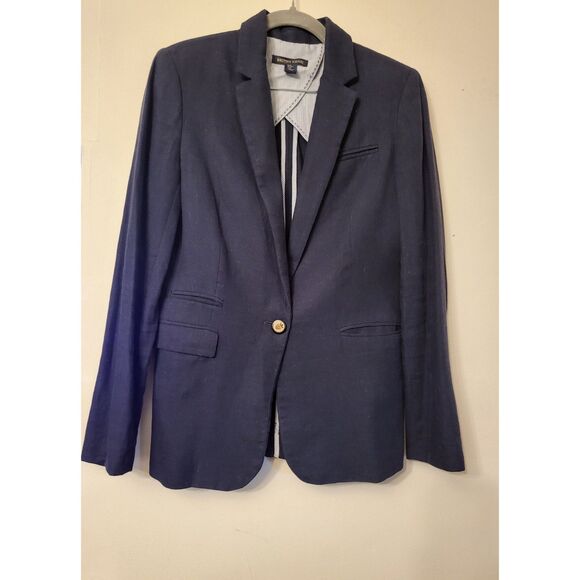 British Khaki Navy Long Sleeve Line & Cotton Blazer Women Size Medium Career