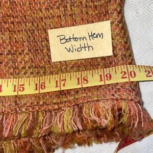Step aside, neutrals—this vintage British Khaki pencil skirt is here to talk back. A stunning collision of orange, purple, and lime woven into classic tweed, it’s giving bold boss energy with a side of retro sass. Fully lined in electric orange satin, it features a high rise, hook & eye zip back, 6” back slit, and a playful fringe hem that says, “I may be professional, but I’m not boring.”
