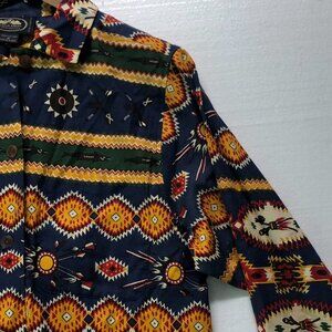 British Khaki by Robert Lighton size 8 Southwest Aztec cotton Button down Shirt
