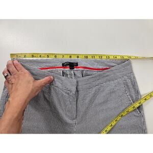 British Khaki size 8 seer sucker navy white stripes ankle Cropped pants EUC *