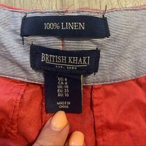 British Khaki women's coral tied waist linen slash side pockets size 6
