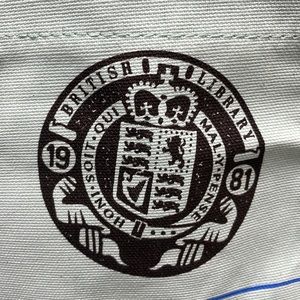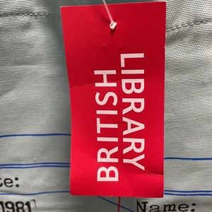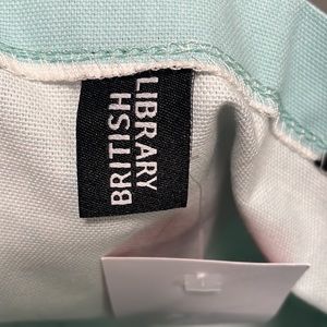 Brand new with tags bought in London at the British library gift shop. Never been used tags still attached. A blue library card print from the 1980s is featured on the front and back of the bag. Identical print on both sides. 100% cotton. 13.5”x15”