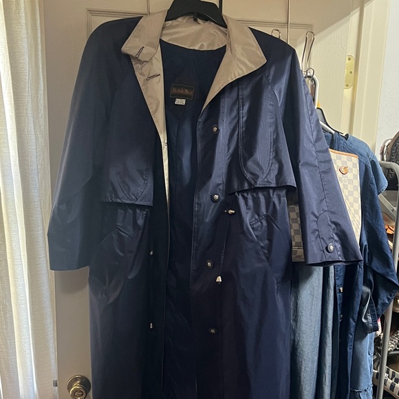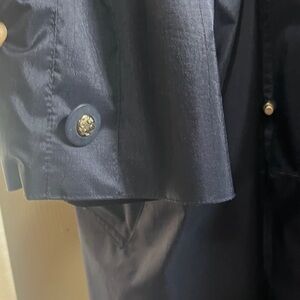 British mist trenchcoat style jacket made out of like a windbreaker fabric like new. It’s beautiful navy blue with khaki around the collar.