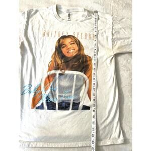 Britney Spears “…Baby One More Time” white graphic tee featuring her classic late-’90s portrait.