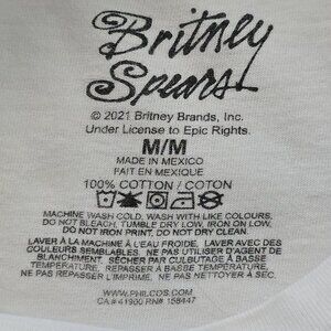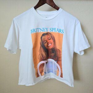 Britney Spears graphic tee, size medium. Short sleeves. Crew neck. White tee with Britney Spears graphic on front. Boxy; over sized. Plain back. Straight hem. Cropped hem. Raw, rolled hem. 100% cotton. Casual. Streetwear. Spring. Summer. Festival. 90s. Pop.