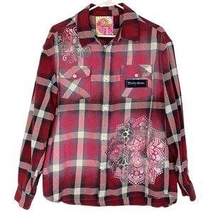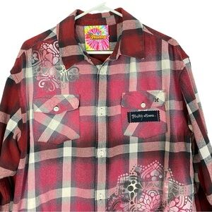 Britney Spears Flannel Shirt Unisex Large Red Plaid Button Down Handmade Upcycle
