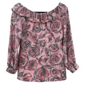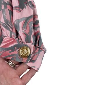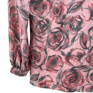 Britt Ryan Pink Gray Rose Print Ruffle Neck Silk Blouse Womens 2