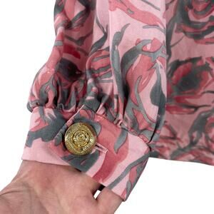 Good pre-owned condition with no flaws to note (See photos for details) Size: Women's 2 • Features: Zip up back with hook and eye closure, Gold toned hardware button at cuffs, Light pink with pink and gray floral rose print, 100% Silk outer, Lined • Style Profile: Dressy, Coquette, Cottagecore, Feminine, Barbie, Barbiecore, Spring, Summer, Lightweight • Good pre-owned condition with no flaws to note • We are happy to answer your questions! Approximate Measurements: Pit to pit: 17” Length: 25.5” Fast Shipping! We accept or counter all offers.