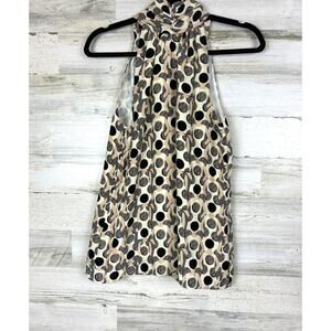 Elegant and feminine, this Britt Ryan women’s size small sleeveless blouse features a chic black and peach color palette crafted from luxurious 100% silk. From far away appears as a random pattern, up close you can see the image of a well dressed lady, so cool!! The pullover design and full lining provide comfort and sophistication, making it perfect for pairing with skirts, trousers, or jeans for polished daytime or evening looks.