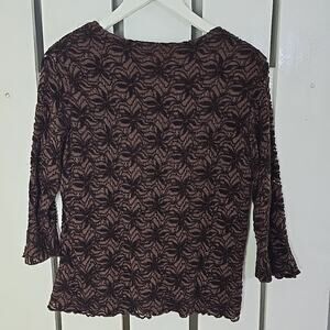 Good Condition, Brittany Black Top, Brown Lined with Semi Sheer Floral Embroidered Top Layer, 3/4 Sleeve with Flutter Detail, Size Large