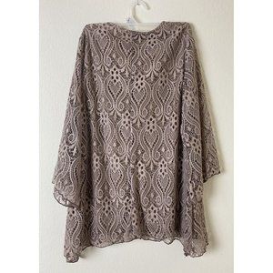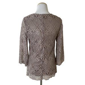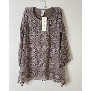 Brittany Black Tan Lace Top Long Sleeve Scoop Neck Size Small NWT