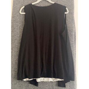 Brittany Black Top Black White Sequin Sleeveless Drape Open Asymmetric Vest XL