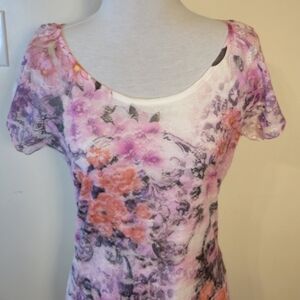 Brittany Black: Y2K Romantic Floral Lace Lined Fitted Baby doll Short Sleeve Tee