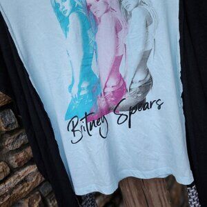 Brittany Spears One of A Kind Upcycled Band Tee with flowy open sides sleeves with fringe! Exposed seams gives this a well worn loved look on a brand NWT tee!