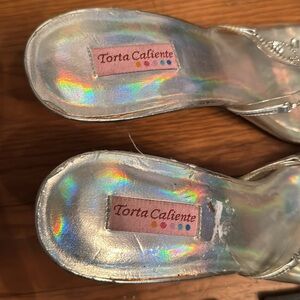 Brittney spears y2.k princess party silver glam gem head tassel heels mule