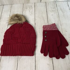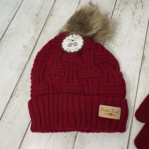 Britt’s Knits Plush Lined Knit Hat W/Faux Fur Pom & Matching Glove Set R…