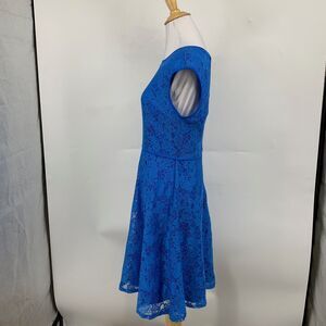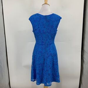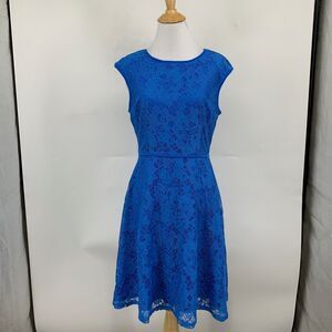 Brixon Ivy Dress Womens 4 Blue Leeah Lace Knit Cap Sleeve Skater Lined Back Zip