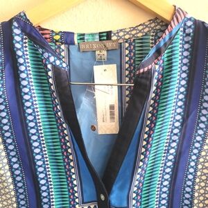 Brixon Ivy, Fallon Mixed Print Sleeveless Blouse, Multicolor, Size Medium