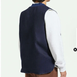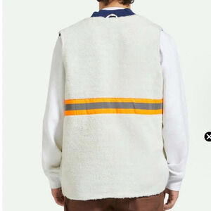 New, Brixton Builders Abraham Reversible Vest Rinse Blue Denim/Sherpa Size Medium, lining polyester faux fur.