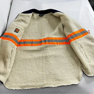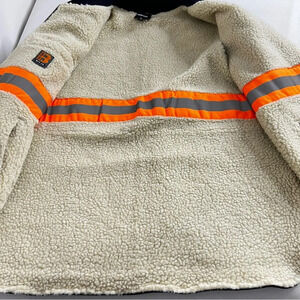 Stretch construction for comfort and mobility Water-resistant coating to keep you dry Reversible interior with high-visibility strip and nylon quilting Easy access front pocket Durable leather zipper pull.