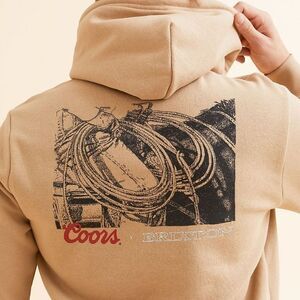 Kick back with a Coors Banquet and layer on this classic Brixton men’s hoodie. Made of mediumweight recycled fleece, it's the cozy men's sweatshirt you'll reach for on chilly days and nights. Subtle design details like inset sleeves and an adjustable drawcord hood give it a premium feel, while the front logo embroidery and back screen printed saddle design rep the brands' genuine American legacies.