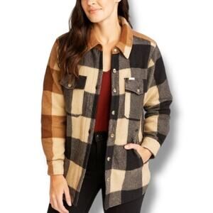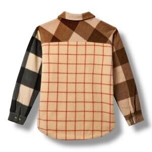 Brixton Durham Biscotti Mixed Check Polar Fleece Shirt Jacket Plaid Oversized