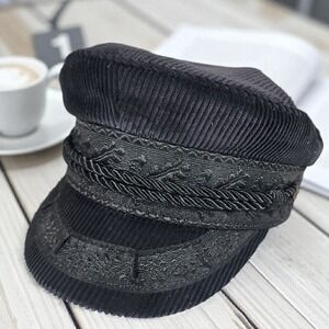 Brixton Fiddler Cap Fisherman Newsboy Hat Lined Size 7 S Black Corduroy Lace