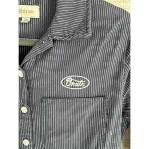 Item: Brixton Hickory Striped Coveralls Jumpsuit Womens XS Blue White Button Front