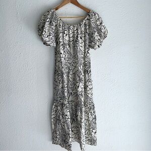 Brixton Indo Linen Swing Tiered Midi Dress Floral Sz Small Ivory