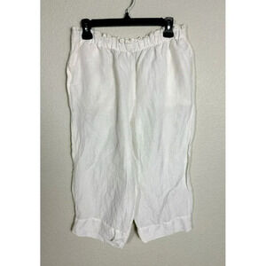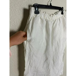 Brixton Luna Paper Bag Pants Size XL White Linen Blend Cropped Wide Leg Pockets