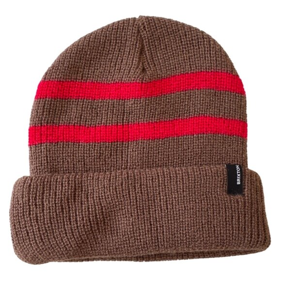 Brixton Mens Knit Beanie With Red Stripes