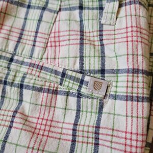 The Victory Chino Pants are Brixton's workwear-inspired pant with a straight leg fit and high-rise waist. They're cream with shades of red, blue, and green plaid print.