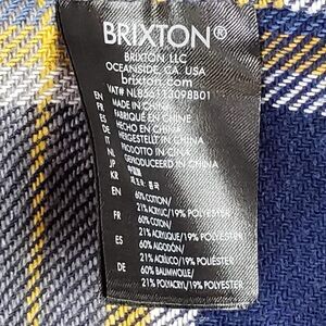 Brixton Shirt Men Medium Yellow Blue Plaid Long Sleeve Button Down