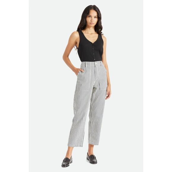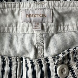 Brixton Women's Cut Vancouver Cropped Chino Navy/White Stripe Ankle Pant Size 28