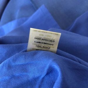 Gorgeous shade of cobalt, this dress features lace shoulders, upper back and cap sleeves, exposed back zip, and rounded neckline, lined.