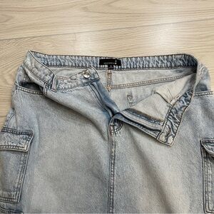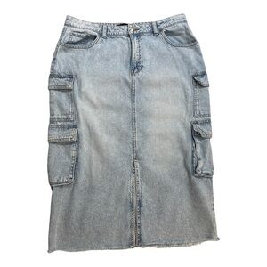 Broadway 38 Denim Light Wash Cargo Midi Front Slit Blue Denim Skirt Size 14