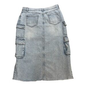 Broadway 38 Denim Light Wash Cargo Midi Front Slit Blue Denim Skirt