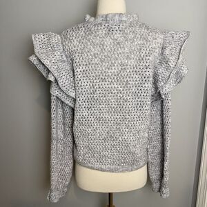 Broadway Gray Ruffle Sleeve Mock Neck Sweater, Size M