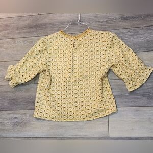 Broadway Open Weave Lace Yellow Lace Blouse with Puff Sleeves Size Medium