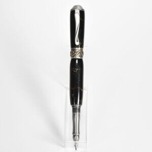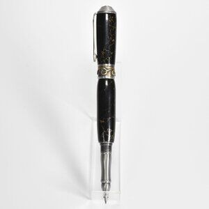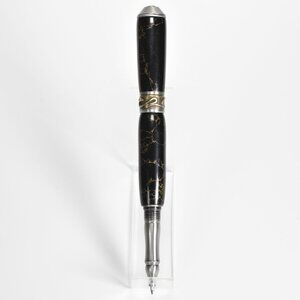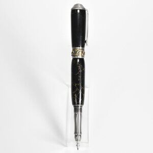 Nouveau Sceptre Antique Pewter & Trustone Rollerball Pen by designer David Broadwell. Handcrafted in Black and Gold leaf Trustone.