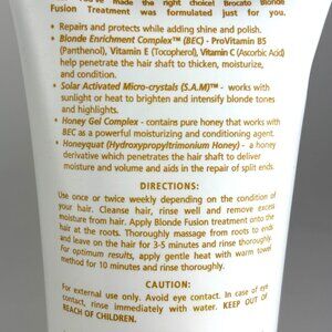 Revitalize your blonde hair with Brocato Blonde Fusion Treatment! This luxurious, salon-quality treatment is specially formulated to repair, protect, and add brilliant shine to natural or color-treated blonde hair. Infused with the exclusive Blonde Enrichment Complex™ (ProVitamin B5, Vitamin E, and Vitamin C), it deeply penetrates the hair shaft to moisturize, thicken, and condition.
