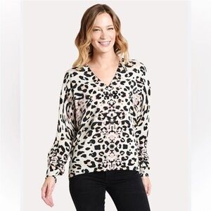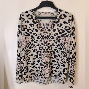 Brochu Walker Elegant leopard print Sweater 100% cashmere with a V-neck design. Adds a sophisticated touch to any outfit. Size XS oversized