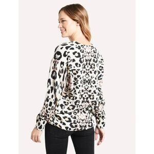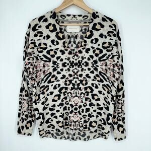 Brochu Walker 100% Cashmere Printed V-Neck Kelso Sweater Leopard Pullover