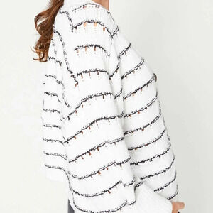 Brochu Walker Atlas Cardigan in Salt White Stripe. This cardigan will be a sweater-rotation favorite. Designed to have a boxy fit. Cropped length. Button front, v-neckline. Saddle shoulders. Ribbed cuffs and hem. Italian yarn. It's in excellent preowned condition.