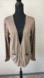Brochu Walker Cardigan Satin Like Sleeves Lightweight Knit Sweater V-Neck Button Front Taupe L