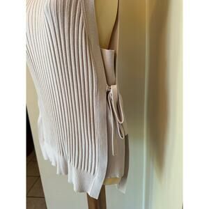 Brochu Walker Cream Ribbed Blouse with Side Ties Size Medium Turtleneck